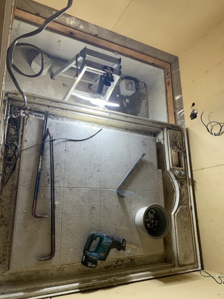 解体後は湯水・ガス等の配管状況を目で見て、工事に支障がないか確認します。