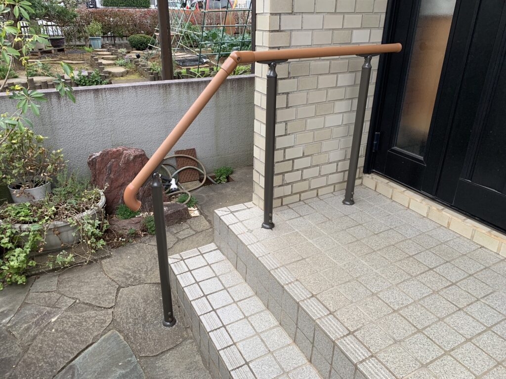 素材は滑りにくさと、夏の暑さ対策のため、樹脂を被覆した手すりを選びました。色は見分けがつきやすいよう、明るい手すり棒とし、安全性に配慮しました。