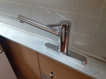 既存のシンク・コンロ台も新しいものと交換いたしました。水栓も耐用年数を超えていたため、このタイミングで同時に交換したほうが、長い目で見るとお得になります。