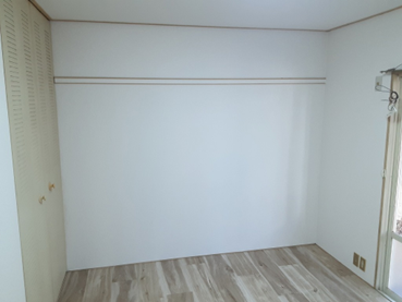 既存の和室が2室ありました。最近は、和室の需要が下がり、洋室が好まれる傾向にあります。 天井は新たに下地を組みクロスを貼り、床は畳を撤去し、新たに床下地を組み、クッションフロアで仕上げました。